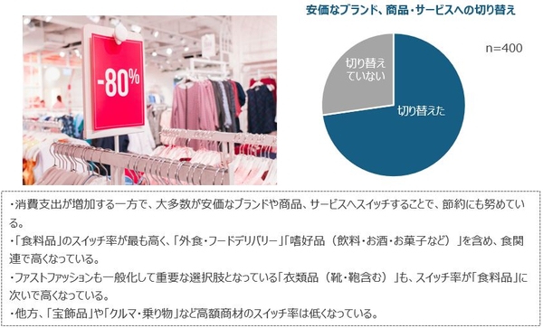 ■消費支出は拡大する一方、安価な商材へ切り替えることで節約を実現。