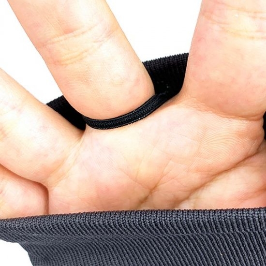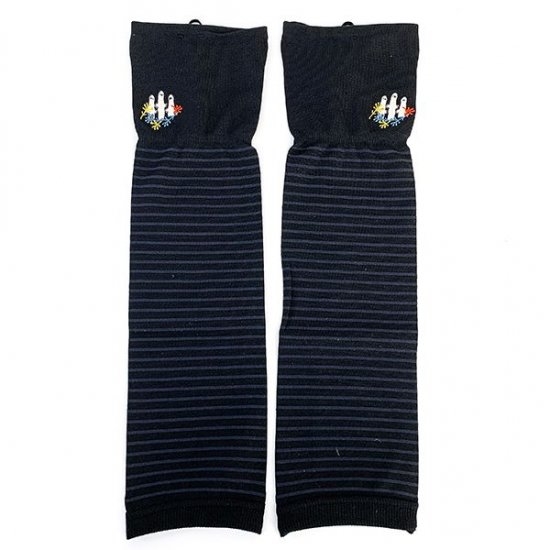 使い方はとっても簡単♪ただスッポリ腕にはめるだけ。手首側にある輪っかに指をひっかければズレ防止になりますよ!ヒジ側はゴムになっているので伸びてラクラク♡ムーミンデザインの生地の色はグレーです。