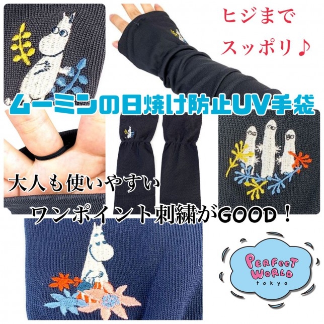 ムーミンの日焼け防止UV手袋!ムーミンが日焼けからあなたを守ります。大人も使いやすいワンポイント刺繍でヒジまでスッポリ♪