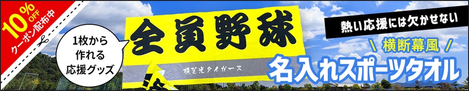 俺流総本家では、応援する気持ちのお手伝いをするために、多種のカスタマイズ可能で自由に文字を入れられる横断幕風フェイスタオルを特別価格で提供させていただきます。