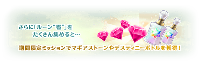 期間限定ミッションを達成することでマギアストーンや「オーバーリミッター」「デスティニーボトル」「レインボーオーブ」「マギアチップ」を獲得できます。
