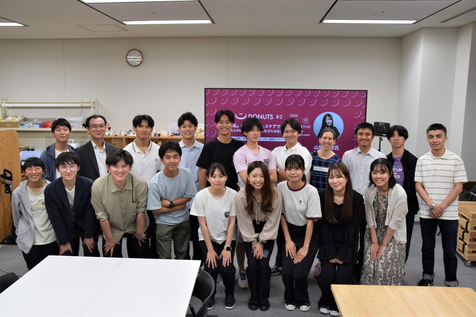 社会課題に挑む学生起業家から学ぶ連続セミナー「DONUTS(ドーナツ)」の第2回が7月1日、天白キャンパスの起業活動拠点ものづくりスペースM-STUDIOで開催され、名城大生をはじめ近隣の大学生など18人が参加しました。