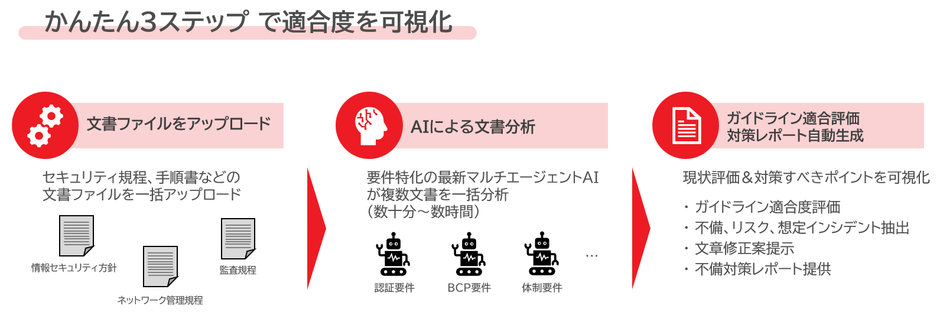 本サービスの提供を通じ、これまで対応費用や工数の懸案から、ガイドラインから要求される基準に準拠しているか否かのアセスメントに取り組むことができていないお客様、改定された基準や新しい基準への準拠レベルを確認したいというお客様の課題を解決することで、需要が拡大するガイドライン対応をご支援してまいります。