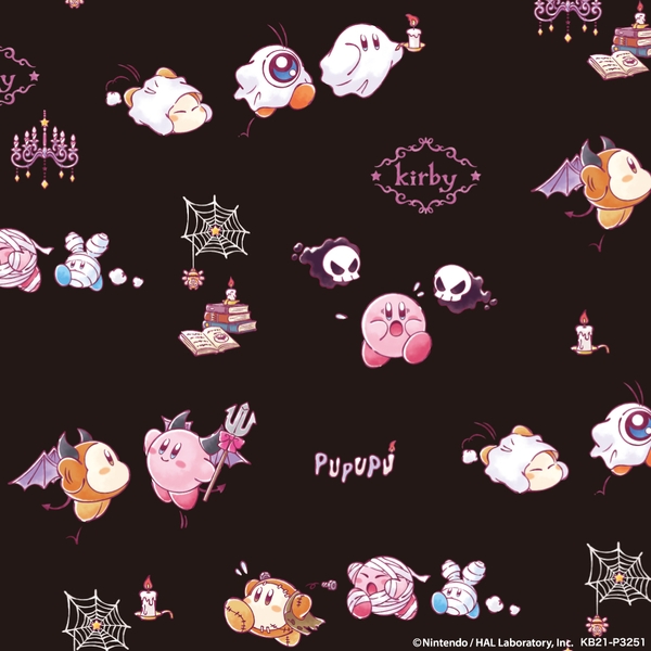 秋の新作は、今までの雰囲気と一変して、2種類のポップなオリジナルアートが登場!カービィたちがお屋敷の中で大騒動?!。ゴーストをモチーフにした「KIRBYBoo!」柄と、ロックでクールなカービィたちが新鮮な「PUPUPU ROCK」柄。細部までこだわったオリジナルアートにご注目ください。