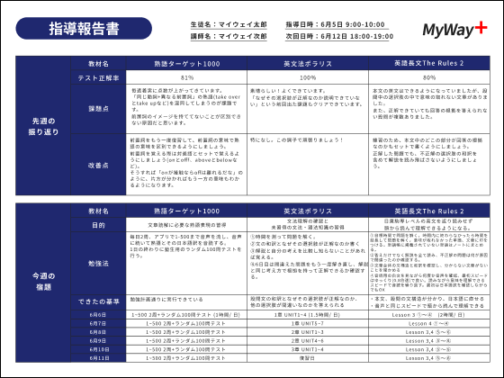 そのため、課題ごとに「1週間後に何ができていればOKなのか?」という基準を具体的に伝え、それを意識して日々の勉強に取り組んでもらいます。