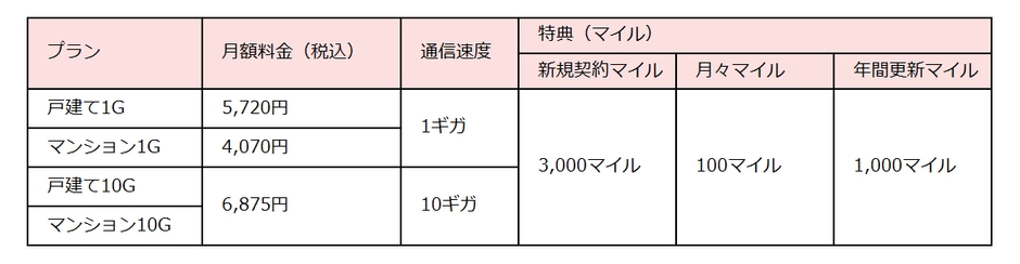 ・特典:通常特典で付与される新規契約マイルが10,000マイルに増額