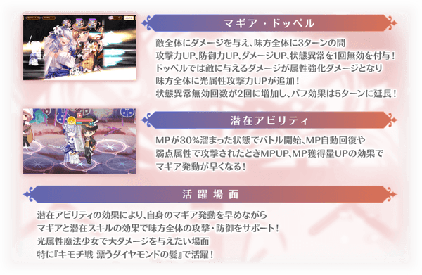 ・魔法少女やメモリアのスキル内容・効果は事前告知の上、変更する場合があります。