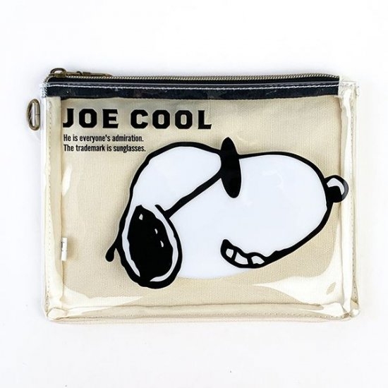 スヌーピーの中でも人気のシリーズ、ジョークールのフラットポーチです。
