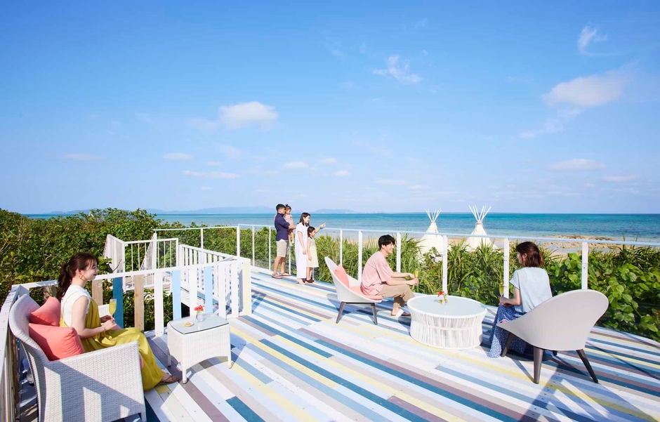 地上3.5メートルの高さにあるガジュマルツリーテラスからは、白い砂浜やコバルトブルーの海を眺めることができます。心地良い風に吹かれながら、時間帯よって変える海の色や、夕景に包まれていく絶景を堪能できます。