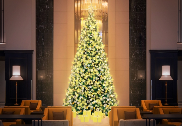 ロビーには、約5mのゴージャスなクリスマスツリーがお出迎え。 テーマは「-Twinkle Christmas Happiness-きらめくクリスマスの幸福」。リーベルホテルで過ごすクリスマスが輝きに満ち溢れ、幸せなひとときをお過ごしいただきたいという願いを込めて名付けました。