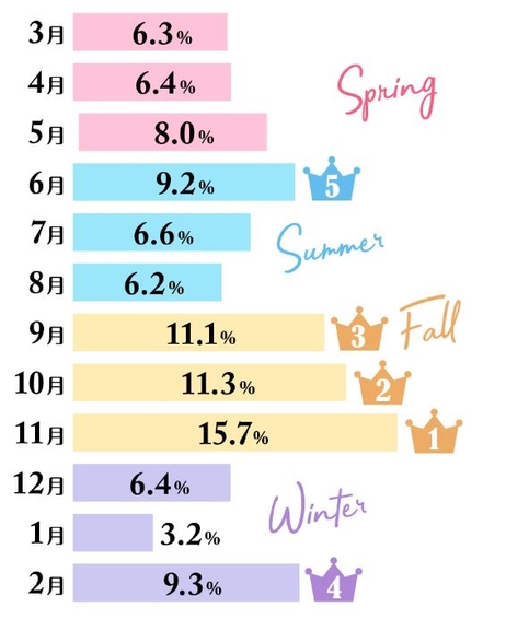 左は、「ゼクシィ結婚トレンド調査2020」にある、挙式月の人気ランキング(出典: