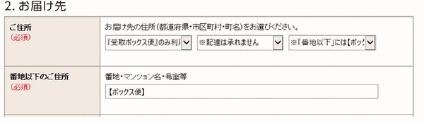 ※配達エリア外のお客様は会員登録時の住所を以下の形式でご入力ください。