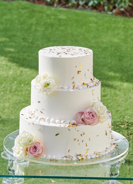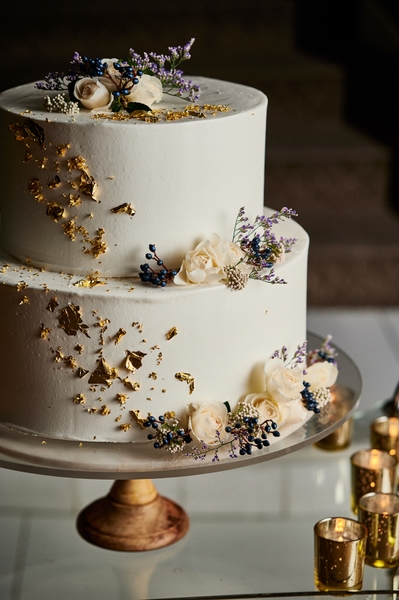 海外でも人気の金箔を使用した高級感溢れるケーキ。上品なデザインはどんなドレスにもなじみの良いケーキです。