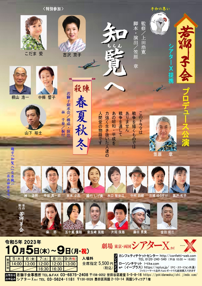 一般社団法人若獅子会(代表:笠原 章)主催、『知覧へ』『殺陣 春夏秋冬』が東京・名古屋にて上演されます。