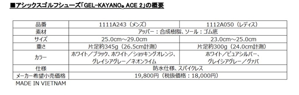 アシックスゴルフシューズ「GEL-KAYANO® ACE 2 (ゲルカヤノ エースツ ー)」※を新発売