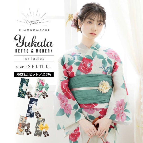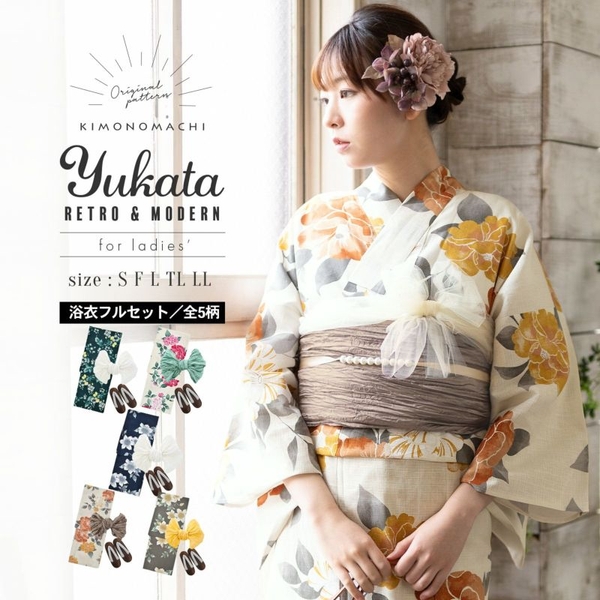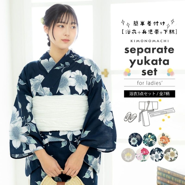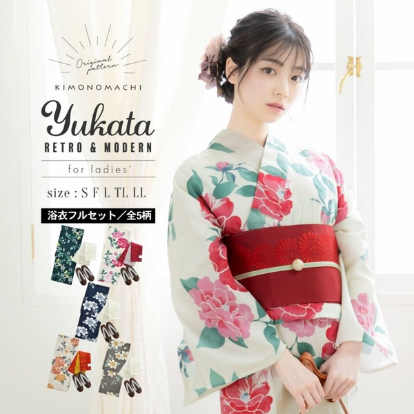 同柄の浴衣は、半幅帯のセットや、浴衣単品、フルセットに大きいサイズ、セパレートタイプも