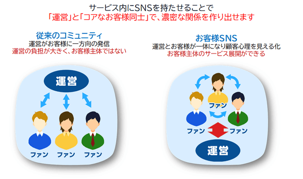 クローズドなSNS内には、サービスのファンで構成された商品利用者のコミュニティが形成されます。