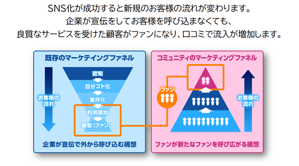 コミュニティの仕組みでコアファンの口コミを発生させ、来客数を伸ばします。
