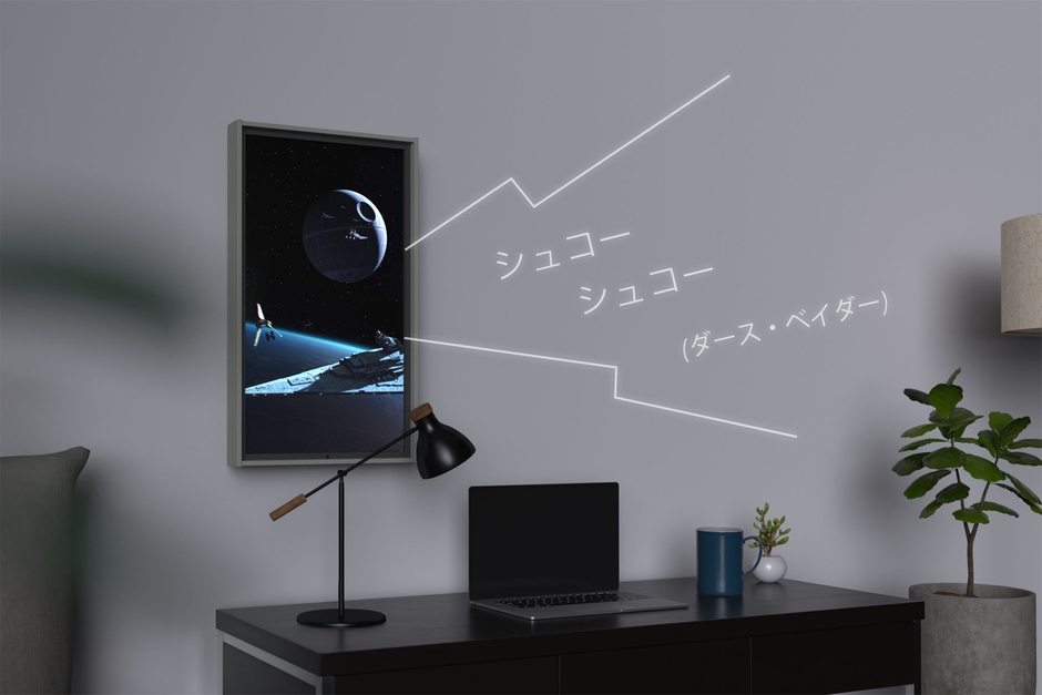 壁にかけるだけで世界の風景を楽しめる「Atmoph Window 2」のスター・ウォーズモデル「Atmoph Window 2 | Star Wars」は、スター・ウォーズロゴのあしらわれた限 定の本体デザインだけでなく、スター・ウォーズの世界観を緻密に CG で再現した風景を本体に搭載しています。全ての風景映像は、映画のワンシーンの静止画を使って一から再現しています。窓を部屋に置くだけで、はるかかなたの銀河系の日常世界を眺めることができます。