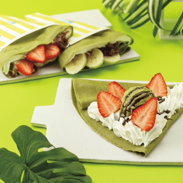 クレープはタピオカ粉を使用したモチモチ食感で、定番のバナナチョコから抹茶系のクレープまで種類豊富。