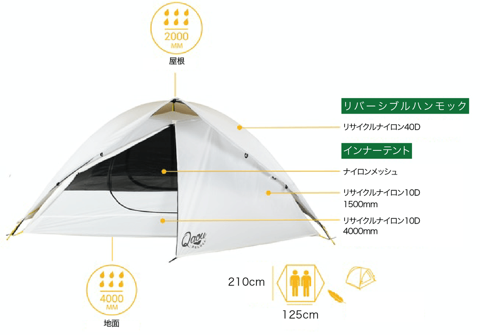 廃棄ペットボトルで作ったサステイナブルなフランス発のハンモックにもなる6in1多機能テント