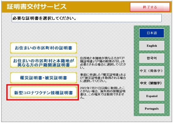 現在、ワクチン接種証明書については、市町村窓口等における紙での取得または接種証明書アプリによる電子的な取得が可能となっています。