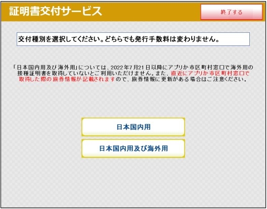 ※海外用の接種証明書を取得するためには、2022年7月21日以降に自治体窓口かアプリで海外用の接種証明書を取得している必要があります。