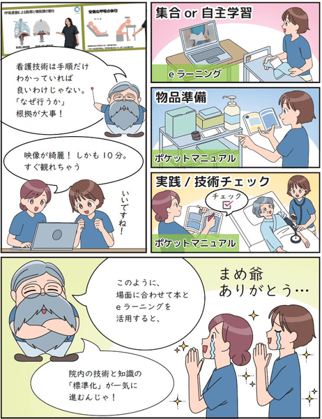 「S-QUE新人看護職員研修」eラーニングと連動しているので、一緒に使って学べます!
