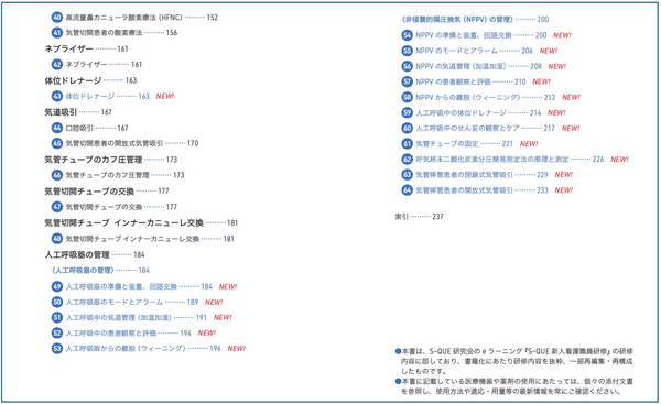 〇本書は「S-QUE新人看護職員研修」eラーニングに対応しており、同eラーニングのテキストとしてご活用いただけます。