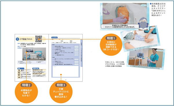 〇本書は、新人看護職員に必須の技術について、「基本的事項(目的・適応・観察項目・異常時の対応)」「必要物品」「手順チェックリスト」を写真などを用いてコンパクトに集約しています。