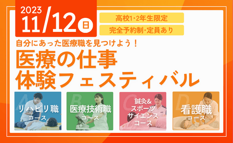 【医療の仕事 体験フェスティバル特設ページ】https://www.morinomiya-u.ac.jp/port/work_seminar/