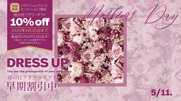 花の総合カンパニー クリエイティブ・フラワー・コーポレーション(株)(本社:大阪府大阪市、代表取締役社長:松村吉章)が展開するフラワーショップブランド『conoka』コノカは、2025年4月1日(火)から母の日限定商品の予約販売を開始致します。