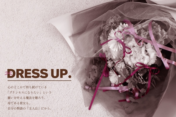 心のどこかで待ち続けている「プリンセスになりたい」という願いをかなえる魔法を贈ろう。母である彼女も自分の物語の主人公だから。そして、この特別な日に、彼女の心に眠るプリンセスが目覚め、美しいドレスを纏い、笑顔とともに輝くひとときを過ごせるように。誰よりも頑張る彼女に、ふと自分を見つめ直し、自分を愛する時間をプレゼントしよう。