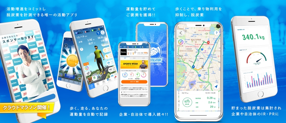 2020年には、住民や社員の方の健康増進を支援するツールとして、自治体や企業での導入も始まり、ユーザーの平均歩数の増加と高い利用継続率を実現しています。2022年4月に、人の活動による二酸化炭素排出抑制効果を可視化する新サービス「SPOBY 脱炭素ウォーク」をリリースしました。