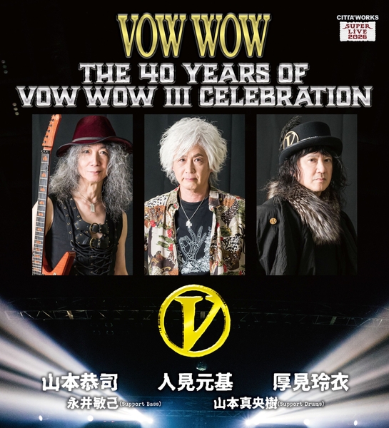 2026年はVOW WOWが当時、活動拠点を英国に移してから40周年とも言えるメモリアルイヤー。注目のサポート・メンバーにはベース永井敏己に加えて、山本恭司の息子でありステージ経験も豊富な実力者、山本真央樹がドラマーに決定した。単に80年代の再現では終わらない。VOW WOWの進化と快進撃は止まらない。今の日本ハードロックシーンを体感してもらいたい。なお、チケットは一般発売に先駆け、9月21日(日)より先行受付(抽選)がスタートする。詳細は公演公式HPサイト参照。