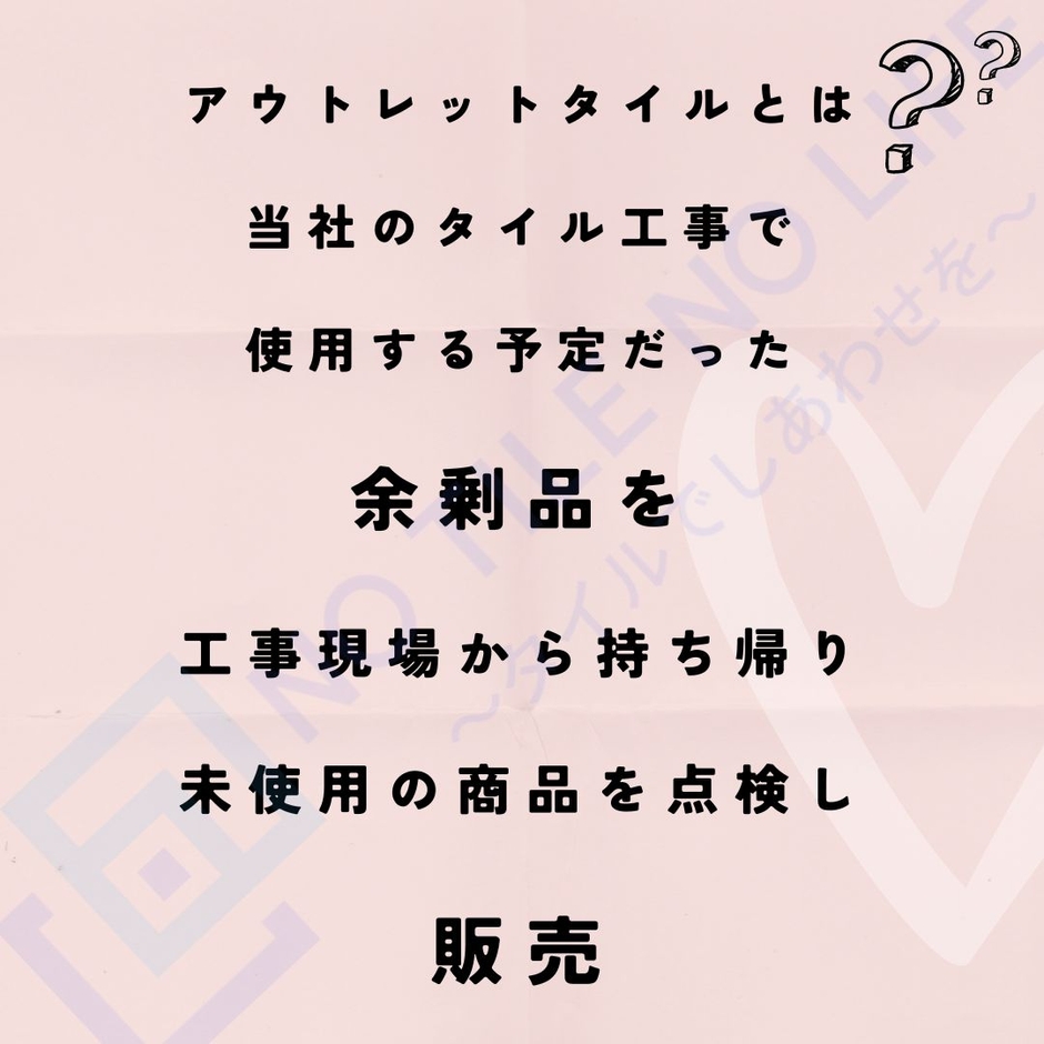中村タイルがタイル工事で使用する予定だった余剰品を現場から持ち帰り検品し、直接販売いたします。未使用なので箱に入ったままの新品同様のアウトレット エコカラットです。