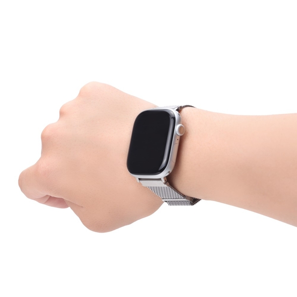 シーンを選ばず使えるスタイリッシュなデザインのApple Watch 用 ステンレスマグネットバンドです。通気性や耐久性に優れたメッシュ構造の高品質ステンレス素材。着脱・長さ調整が簡単なマグネットロック採用しています。バンドの長さは、手首周り約135~185mmの間で調節が出来ます。