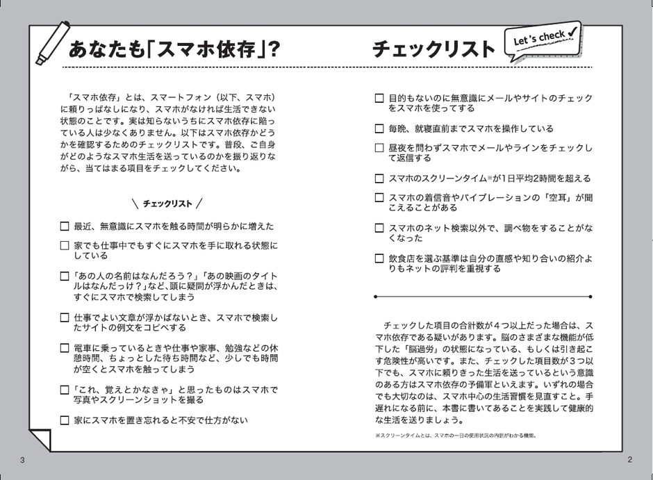 『スマホ脳の処方箋/奥村歩 著』(あさ出版)より あなたもスマホ依存かも 『スマホ依存』チェックリスト 公開