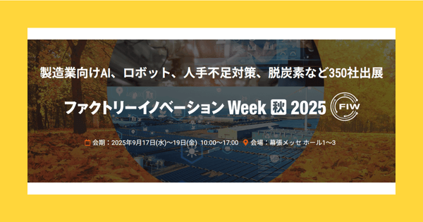 AIポータルメディア「AIsmiley」を運営するアイスマイリー(東京都渋谷区、代表取締役:板羽晃司)は、2025年9月17日(水)~9月19日(金)に幕張メッセにて開催の「Factory Innovation Week [秋] 2025」にブースを出展します。