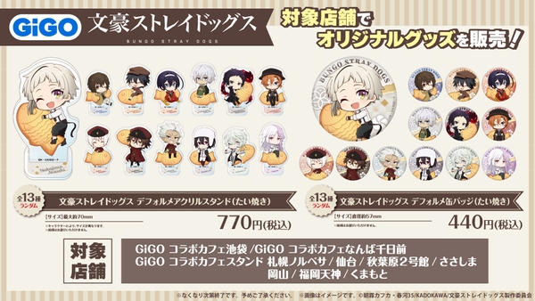 GiGOのたい焼き・ノベルティ付きドリンク「文豪ストレイドッグス」販売のお知らせ
