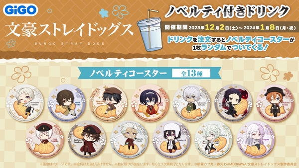※もらえるコースターの絵柄は『文豪ストレイドッグス焼き』と同じ絵柄になります。