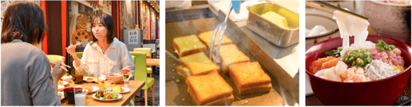 夜ご飯のイメージが強いバイキングですが、大江戸温泉物語は朝のバイキングも種類豊富で目移り必至。洋食派には焼き立てのクロワッサンや、とろけるチーズが美味しいクロックムッシュを。和食派には種類豊富な具材をお好きにトッピングして作る「オリジナル丼」がお薦めです。