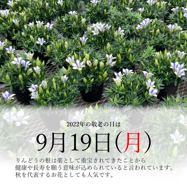 りんどうの根は薬として重宝されてきたことから、健康や長寿を願う意味が込められていると言われており、敬老の日ギフトにぴったりの花です。秋を代表するお花としても人気です。ギフトに嬉しい「Thanksカード」、贈られる人も安心の「品質保証カード」「お手入れのしおり」付きです。