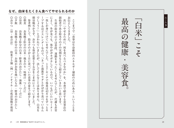 本書は1980年に刊行され、120万部突破のベストセラーとなった鈴木その子の「やせたい人は食べなさい」をベースに、現代の生活環境や食習慣などを鑑み、新たに36のルールにまとめて書き下ろしたものです。