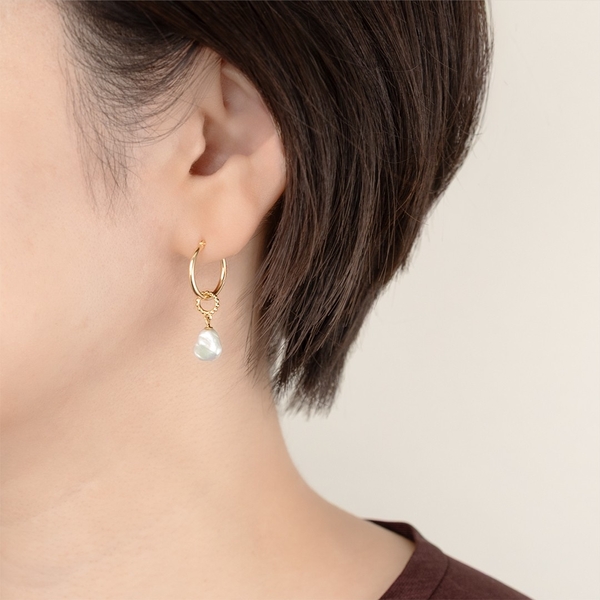 自然が生み出したバロックパールの個性的なフォルムを楽しめる、シンプルなポストピアス。フォーマルなイメージがあるパールピアスも、バロックパールのナチュラルな表情によりカジュアルな装いにもマッチします。