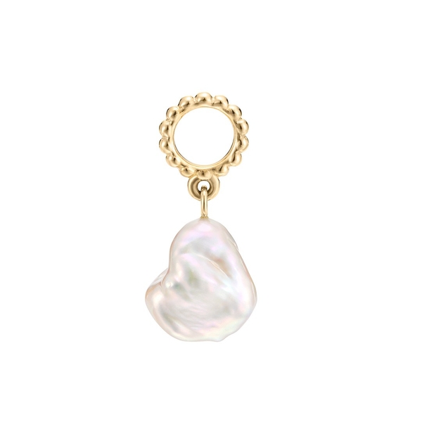 バロックパールが揺れるチャーム。チェーンに通してネックレスとして身に着けたり、フープピアスに通して耳元で楽しんだり、気分や装いに合わせてカスタマイズが可能です。様々な着け方を何通りも楽しめるチャームは、コストパフォーマンスにも優れた万能アイテム。珠が連なるようなデザイン性のあるバチカンで、360度どこからみても美しく身に着けられます。自然が生み出した個性的な形を、どの角度からも楽しめるチャームです。K18イエローゴールドを使用しており、永く愛用いただけます。