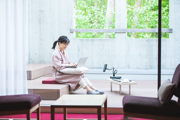 ・チェックイン前、チェックアウト後でもパブリックスペースでテレワーク可能