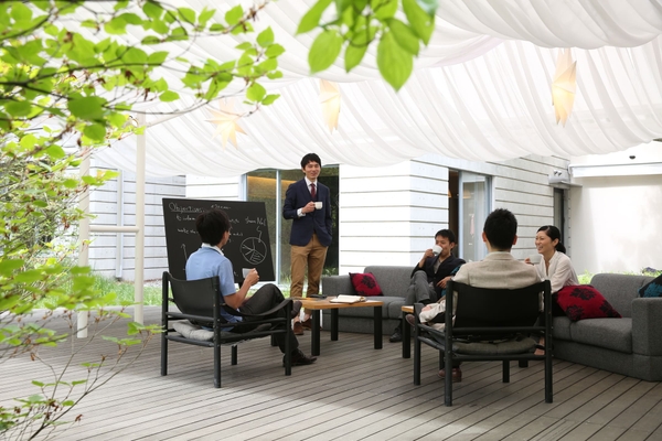 1 3密を回避した、屋外での開放的なミーティングスタイル