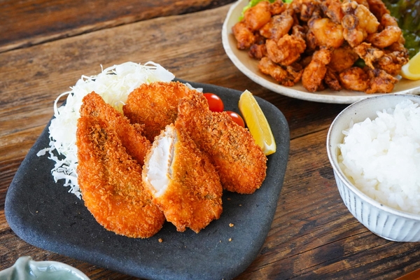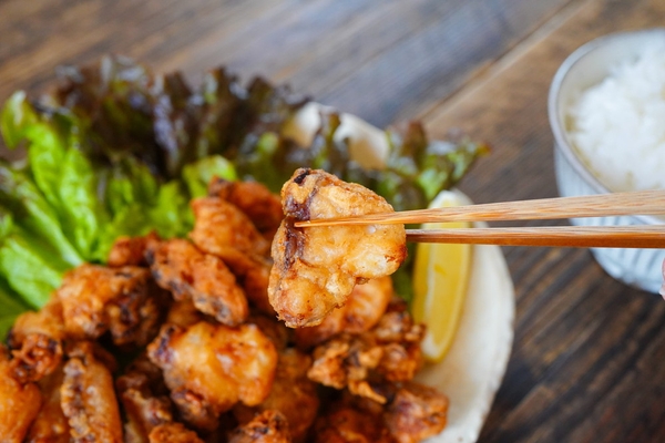 こちらはカリッとした衣に、ぷりぷりっと弾力のあるタコの食感、そして噛むごとに旨みが感じられます。タコのサイズは大きめなので食べ応えも抜群!ごはんのおかずにも良いですが、ビールと相性ピッタリなので、おつまみとしてもオススメですよ。