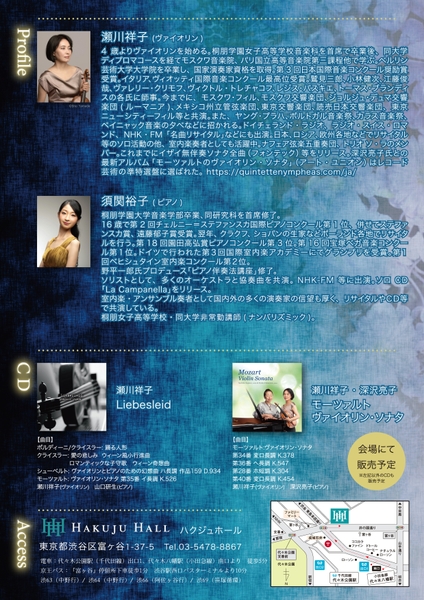 『瀬川祥子ヴァイオリンリサイタル2022【延期公演】』